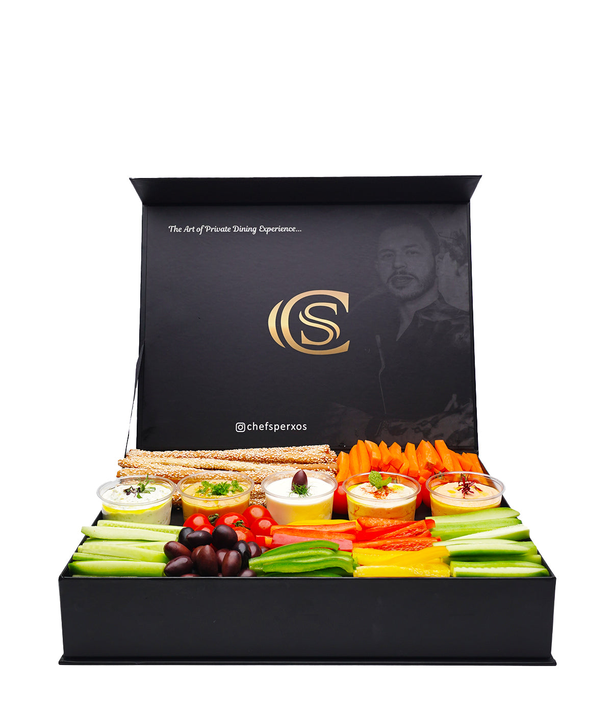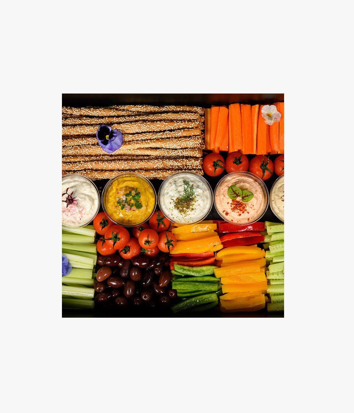 - Veggetable - carrots, cucumber, celery, bell peppers, cherry tomato, kalamata olives