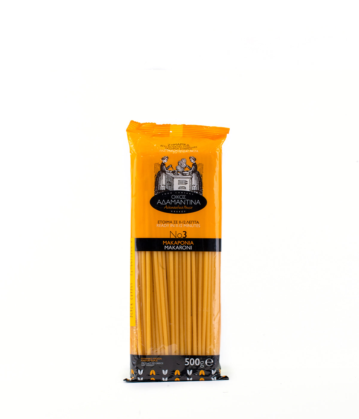 Traditional pasta ‘Macaroni No3’ ideal for the famous dish ”Greek Pastitsio” . Handmade with pure raw materials, mainly from local producers established in Laconia region in the South Greece. Ready in 9-10 min you can also serve them with tomato sauce and feta cheese, or with beef cooked in a thick fresh tomato sauce