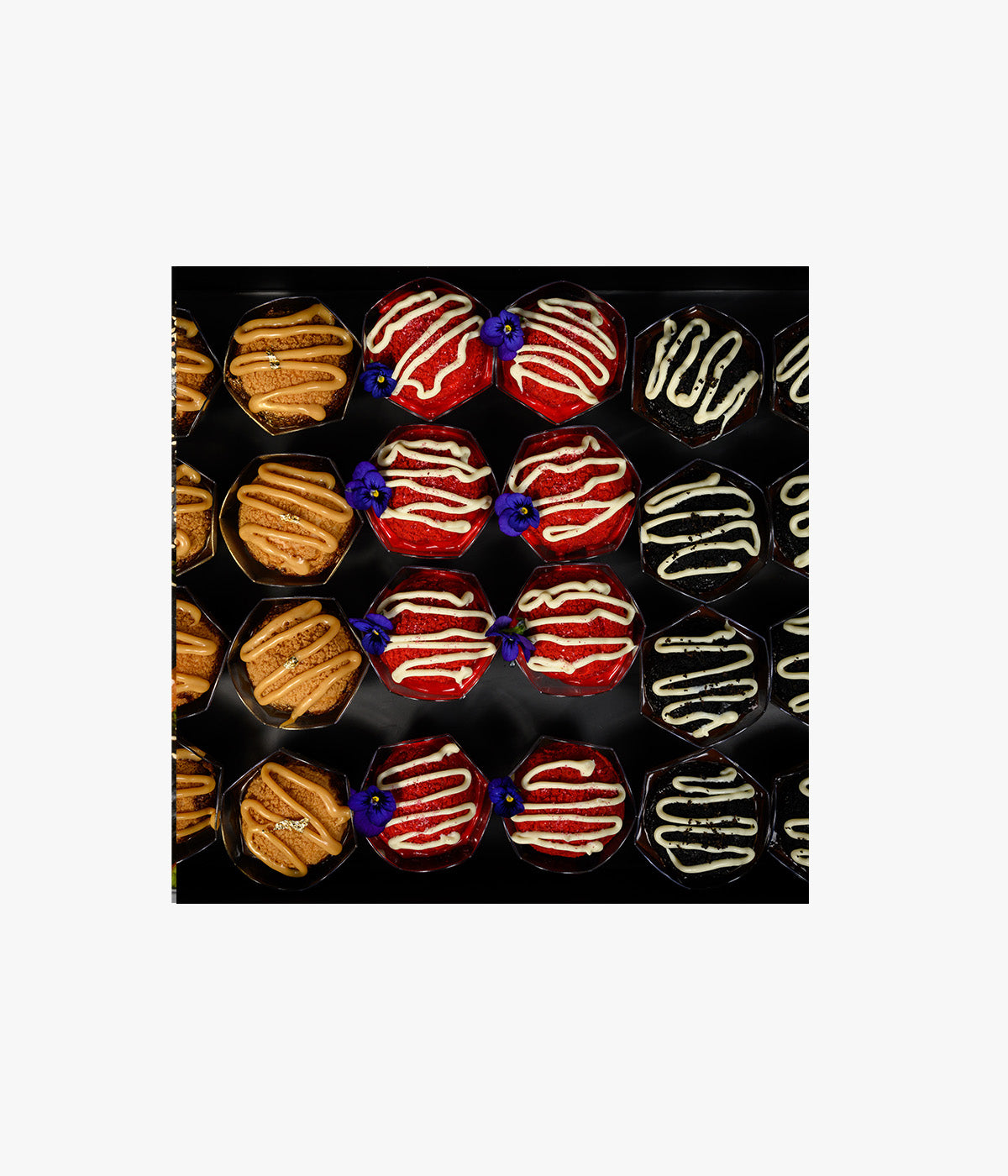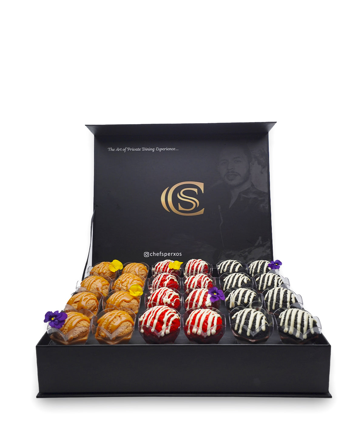 Included 24 cups with three flavour of profiteroles with pastry cream: